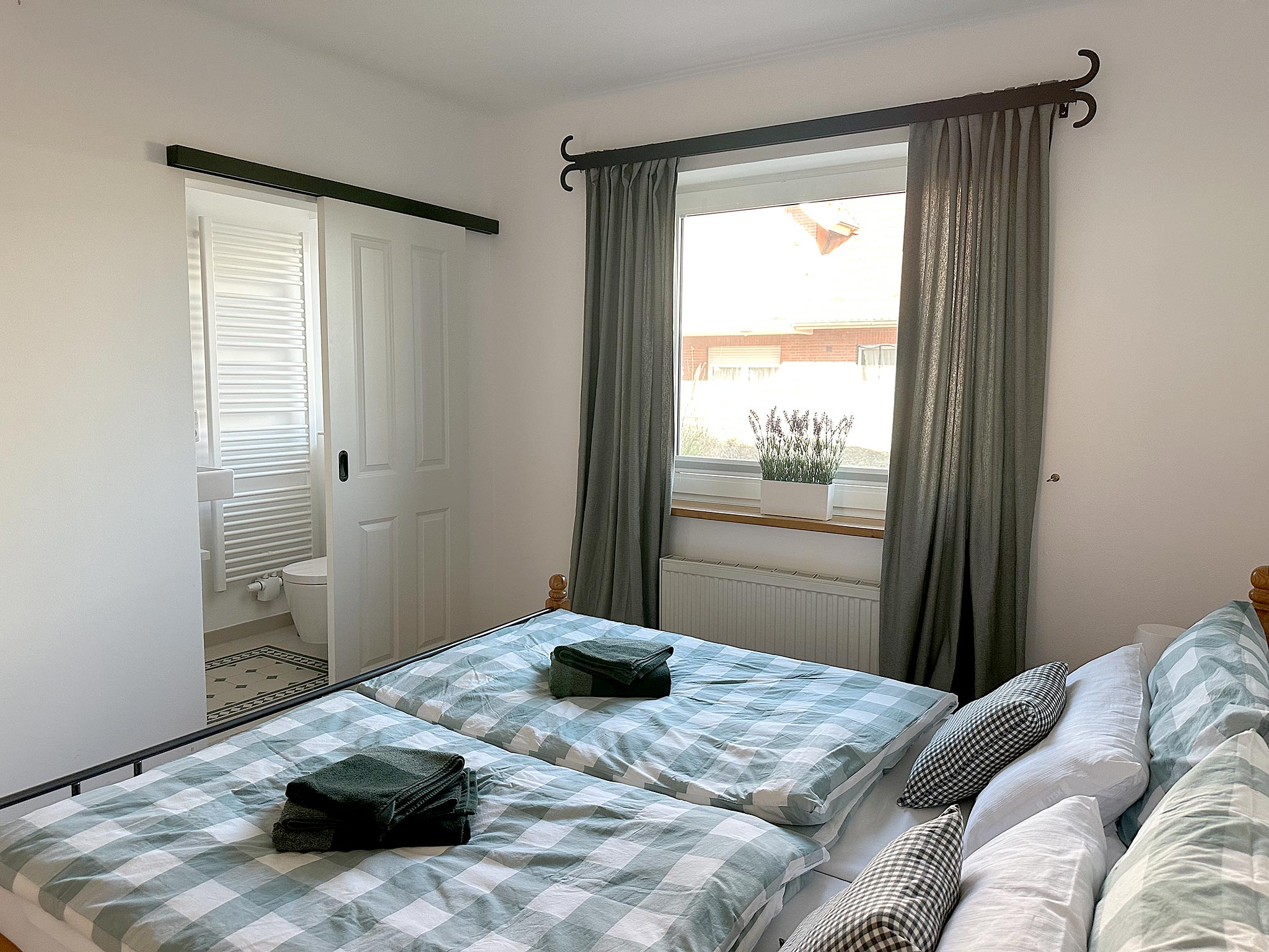 Die EG-Ferienwohnung besteht aus einer sehr großzügig geschnittenen ca. 100 m2 großen Erdgeschosswohnung für 6 Personen und 1-2 Kleinkinder. Sie verfügt über ein großzügiges Wohnzimmer, sep. Küche mit Essplatz, 3 Schlafzimmer, 1 großes Bad mit barrierefreier Dusche, 1 Ensuite-Bad, 1 Gäste-WC und einer wunderschönen sonnigen, völlig windgeschützten Terrasse.